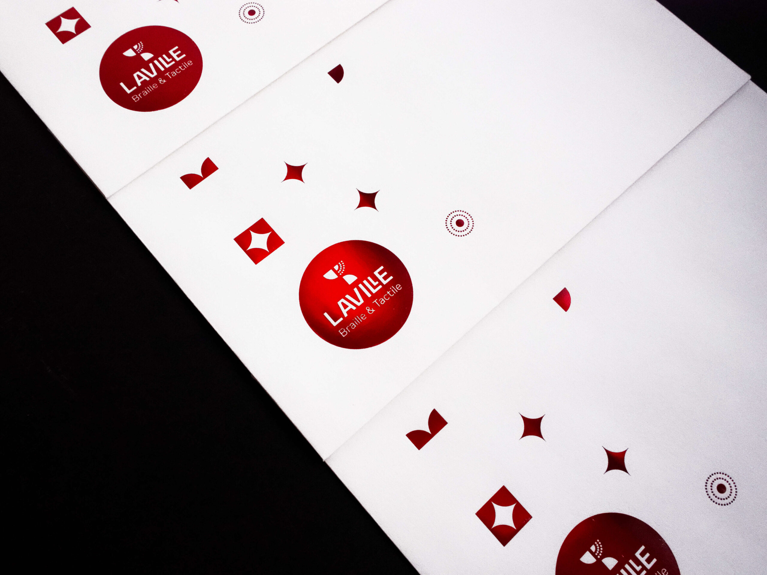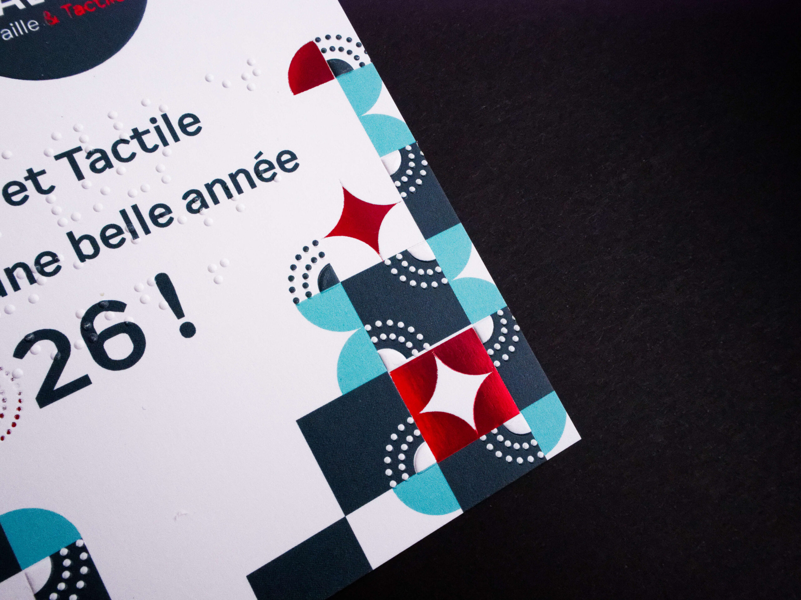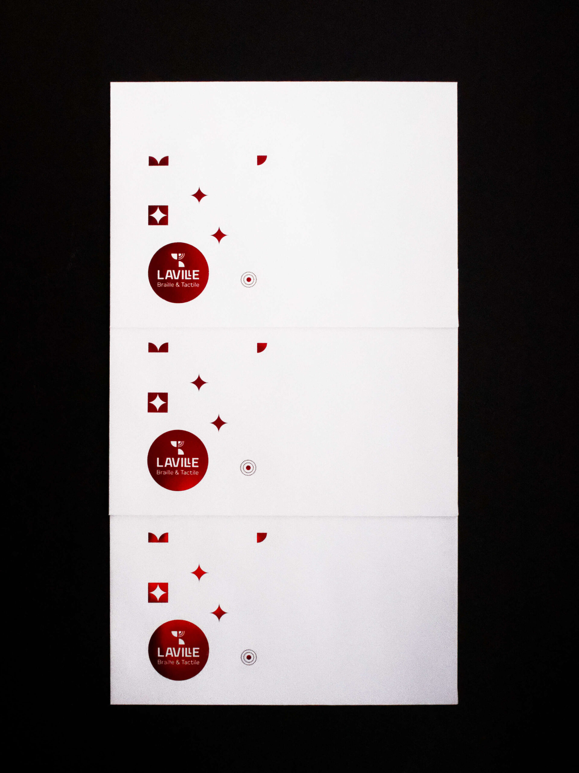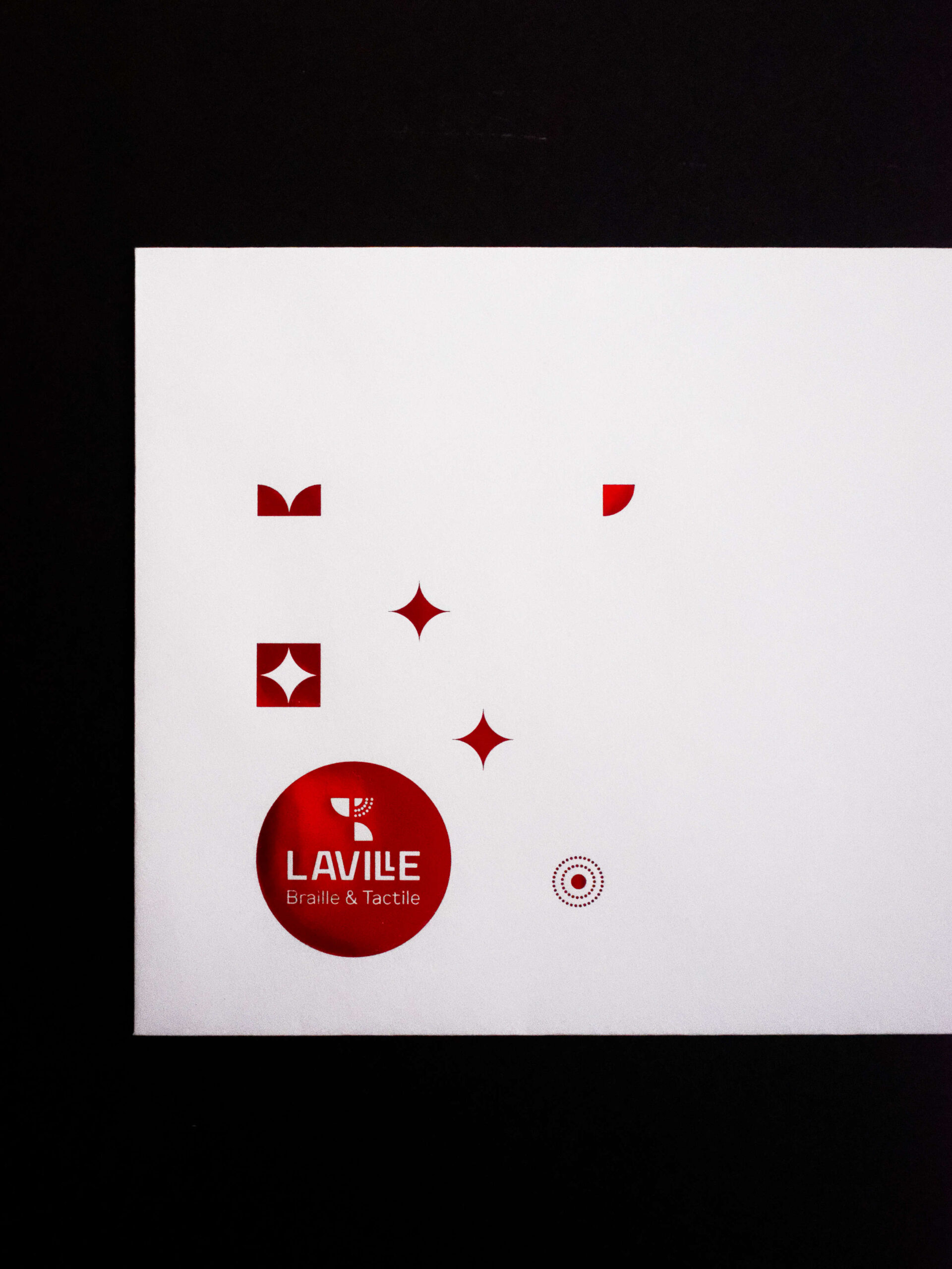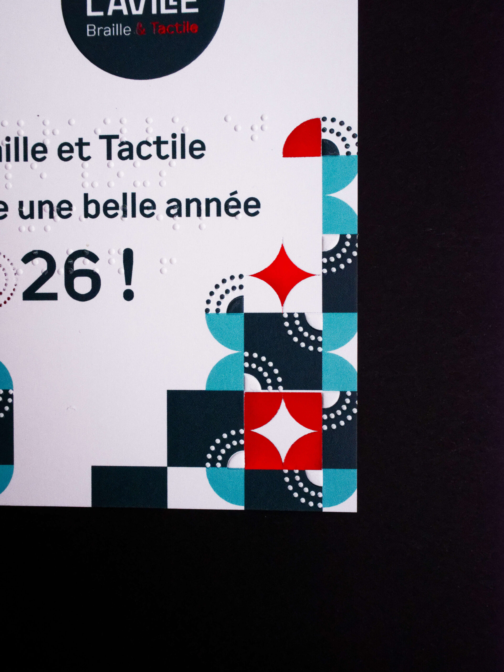 Fidèle à la mission de Laville Braille & Tactile, l’intégration du braille s’inscrit naturellement dans la conception du projet. Loin d’être un simple ajout, il participe pleinement à l’équilibre graphique et à l’expérience sensorielle du support. Cet ensemble démontre qu’exigence esthétique et accessibilité peuvent coexister avec évidence, donnant naissance à un objet pensé pour tous les publics.