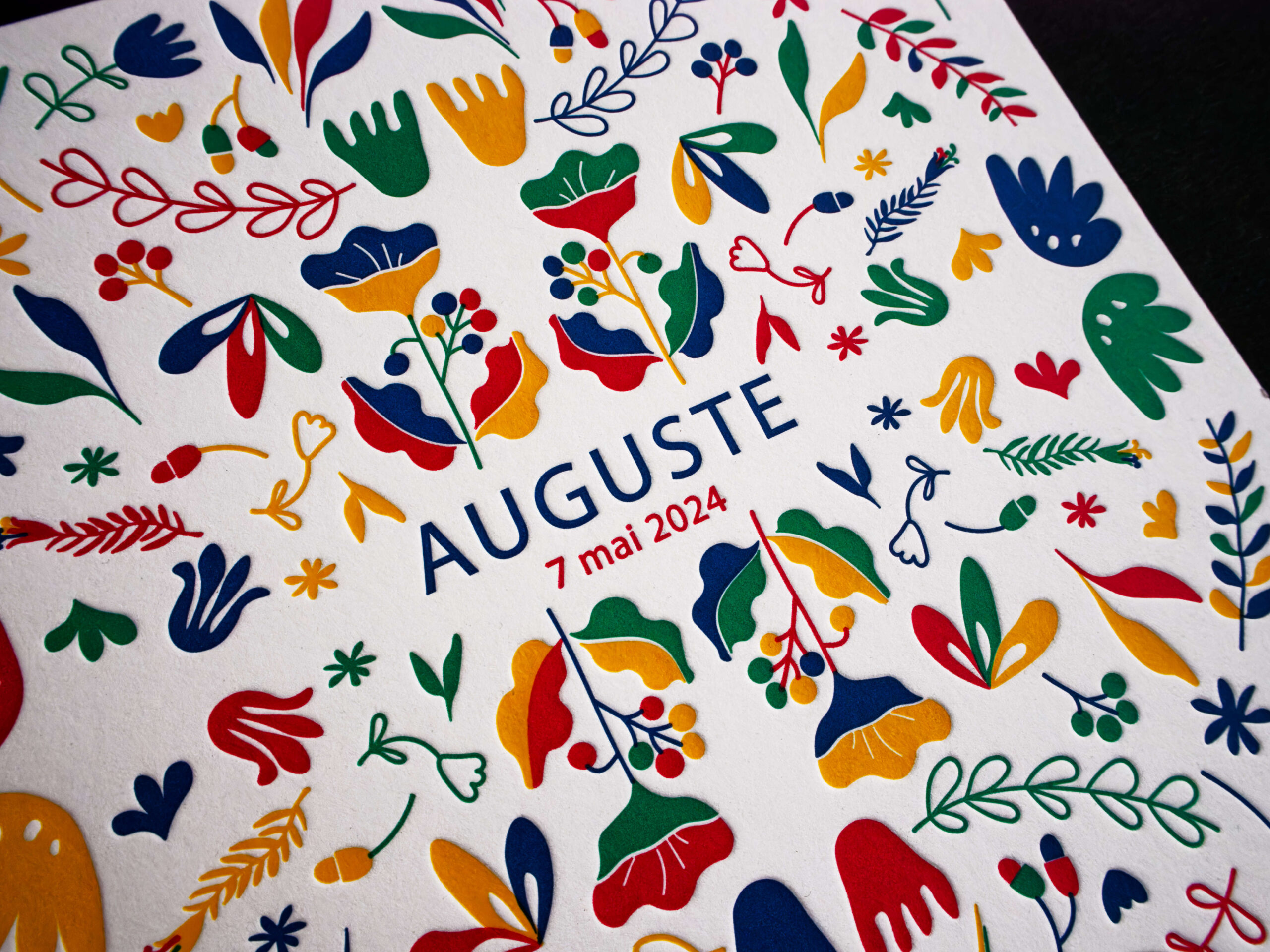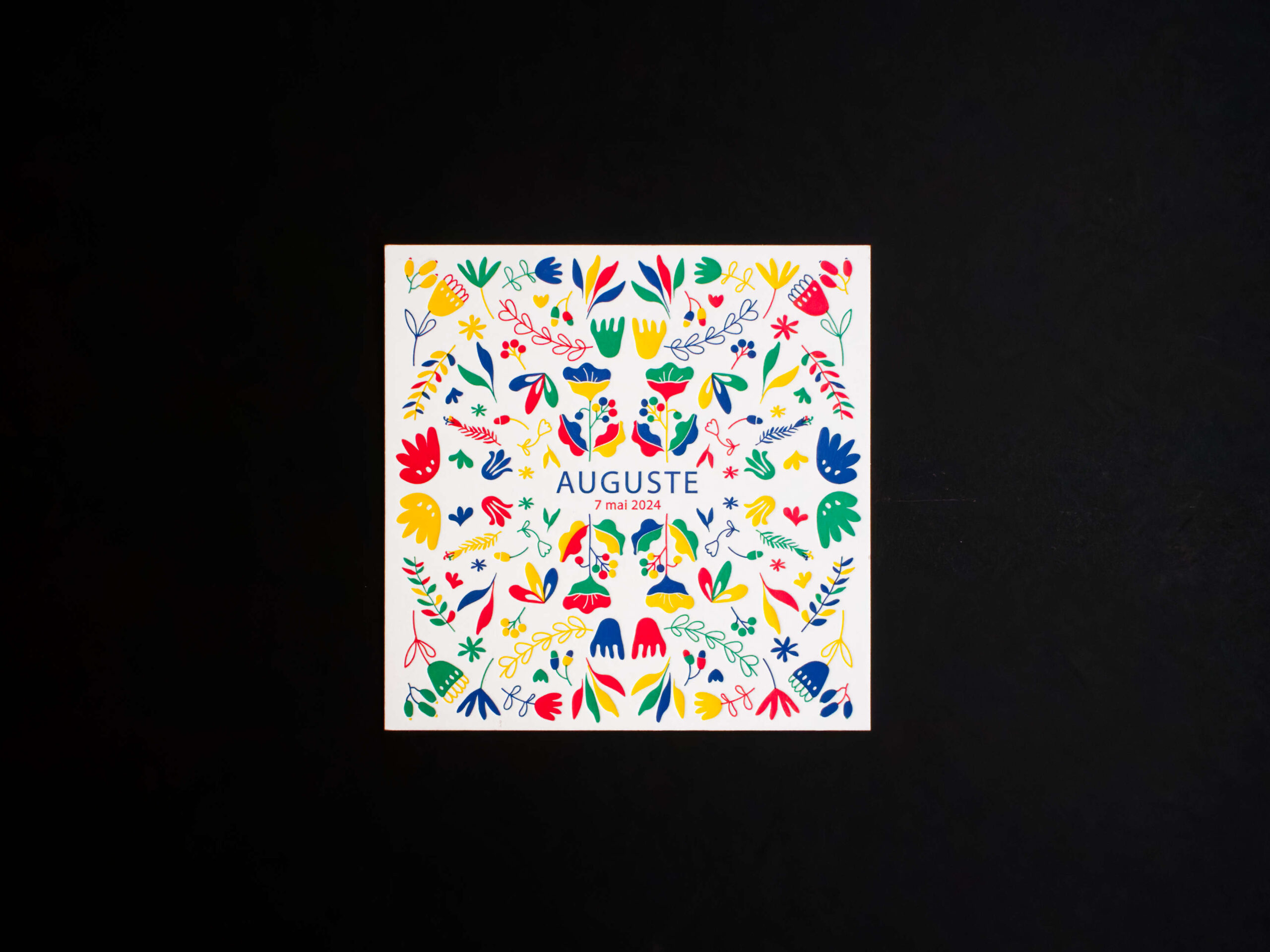 Nous avons imaginé et imprimé le faire-part de naissance du petit Auguste, né le 7 mai 2024.