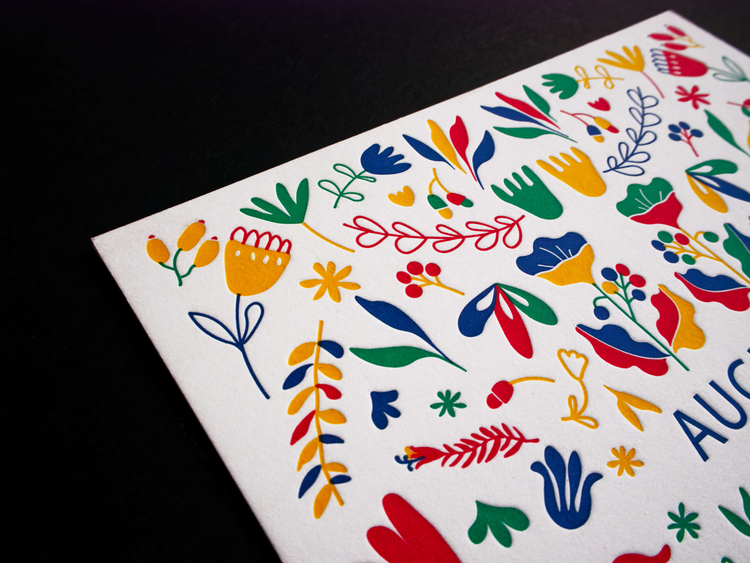 Derrière cette apparente légèreté se cache une véritable prouesse technique : une impression en letterpress, où chaque couleur correspond à un calage machine distinct.